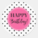Happy Birthday Pink Black White Dots Classic Round Sticker