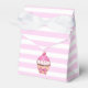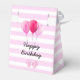 Pink striped cherry cupcake box, striped pink background with Bows and Balloons. Happy Birthday .