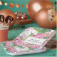 This simple spring inspired pink floral design is a cute and unique way to style a birthday celebration. Check out our coordinating party supplies in this collection. Original painting by artist Aubrey Breuklander.