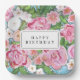 HAPPY BIRTHDAY Pink Floral Spring Blooms Paper Plate
