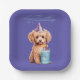 Happy Birthday Poodle with Party Hat & Bday Cake Paper Plate