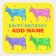 Celebrate a birthday with colourful gift wrap or greeting card stickers featuring pop art style cows in blue, green, purple and pink on a bright yellow background. Add the name of the gift recipient for a one-of-a-kind birthday gift! This funky cow pattern is perfect for kids and adults! Click the CUSTOMIZE button to add a name, change the font style or colour.
