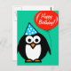 Happy Birthday postcard | penguin with red balloon
