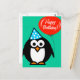 Happy Birthday postcard | penguin with red balloon. Cute animal cartoon postcard with personalised text. Colourful design for Birthday party celebration. Make your own invitations. Change quantity to get the cheapest price per card.