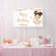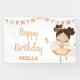 Happy Birthday! Princess Ballerina with bow & sparkling glitter banner, stars and swirls.
