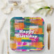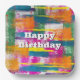 Colourful rainbow abstract design with texture and Happy Birthday text.