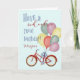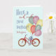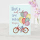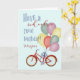 Add recipient's name to this birthday card illustrated with a red bicycle adorned with colourful balloons. This card captures the essence of fun and adventure. With the playful message 'Have a Wheelie Great Birthday' across the front, it's sure to bring a smile to the recipient's face, whether they're a cycling enthusiast or simply love a good time