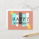 Fun birthday greeting for all ages features mid-century 5-panel atomic rectangles with starburst and crown on salmon pink background