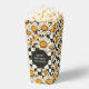 Happy Birthday Personalised Name Retro Groovy Daisy Chequerboard Popcorn Favour Boxes features a groovy daisy pattern on a black and white chequerboard pattern background with your custom text or personalised name in the centre. Perfect as a gift for family and friends for Christmas, birthday, holidays, Mother's day, work colleagues and more. Created by ©2023 Evco Studio www.zazzle.com/store/evcostudio