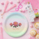 Happy Birthday rose flowers on pastel shades background Paper Plate. Text can be customised.