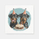 Cute illustration of Rottweiler dogs dressed up for a birthday celebration. Perfect for pet lovers or dog parents!