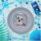 Happy Birthday Party Paper Plate with a Sweet Grey / Grey Schnauzer Puppy. Message can be personalised - Puppy has been painted in watercolors by the designer. Sparkling Black Eyes and a Red Scarf will warm your heart