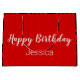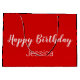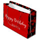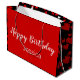 Happy Birthday Script Black and Red Hearts Large Gift Bag