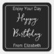 This black sticker has three fields of display text. You can personalise the text as needed. The top line says "Enjoy Your Day". The middle text says 'Happy Birthday' in white script. The bottom text is for the sender's name or a custom message. (Shown: From Elizabeth)