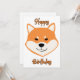 This invitation display the words "Happy Birthday" in a unique print font with orange letters black outline with a Shiba Inu dog face in the centre in this birthday theme and style. Printed on a classic, all around paper 17.5 pt thickness with an uncoated matte finish with an eggshell texture made and printed in the USA with "It's A Party" printed on the back.