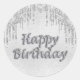Happy Birthday silver glitter drips metal Classic Round Sticker