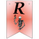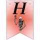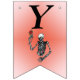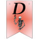 This flag shaped bunting Happy Birthday banner is red in the centre fading to pink with a skeleton holding a single red rose on a stem over his head. Customise the Happy Birthday text and birthday year with the templates.