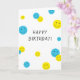 A fun and bright happy birthday card with yellow and blue smiling face icons. All of the colours and text are editable!