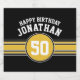 Happy Birthday Sports Stripes with Age Gold Black Beer Bottle Label