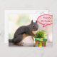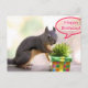 A smiling squirrel tries to unwrap a brightly-wrapped present in this original photo. The words "Happy Birthday" are in a speech bubble.
