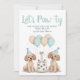 Cute cartoon illustration of Standard Poodle dogs wearing a birthday hat surrounding a birthday cake and balloons. Perfect for pet lovers or dog parents.
