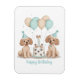 Cute cartoon illustration of Standard Poodle dogs wearing a birthday hat surrounding a birthday cake and balloons. Perfect for pet lovers or dog parents.