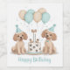 Cute cartoon illustration of Standard Poodle dogs wearing a birthday hat surrounding a birthday cake and balloons. Perfect for pet lovers or dog parents.