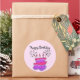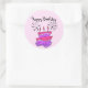 Purple and Pink Birthday cake sticker. These fun stickers can be personalised with a message or your child's name by using the premade template. Use these handy stickers as birthday party favours or envelope sealers.
