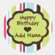 Customisable Happy Birthday Funky Stripe Sticker Green and Brown Just add name