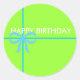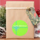 A bright lime green sticker tied with a perfect aqua bow! This sticker looks fab on hot pink, aqua, and even orange tissue paper!! A simple way to dress-up a package.