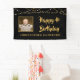Celebrate the birthday person and welcome your party guests with this black and gold themed banner with string lights ideal for celebrating ANY age birthday. The design allows you to personalise it with their photo, name or other text and the number of their birthday (i.e., 35th or 42nd) by typing "Happy #" in the appropriate text field. PHOTO TIP: For fastest/best results, choose a photo with the subject in the middle and/or pre-crop it to a square shape BEFORE uploading and it will fill in the photo space perfectly. Contact the designer via Zazzle Chat or makeitaboutyoustore@gmail.com if you'd like this design modified, on another product or would like coordinating items.