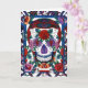 There's a rose in the middle of the skull with some skulls in the border. Detailed rose is printed inside the card too.