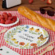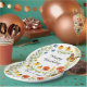 This party paper plate features a delightful digital watercolor design of blue bachelor buttons, vibrant black-eyed Susan's, and bold red poppy flowers, all set against a backdrop of lush green leaves. This cheerful floral arrangement is perfect for a summer birthday party or any festive occasion. It's available as a customizable template, so you can easily tailor it to match your unique party needs.