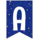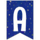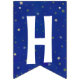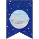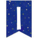 This dark blue bunting garland is a quick way to decorate for a First Trip Around The Sun birthday. It has watercolor sun and planets with the happy birthday message on a dark blue backgrouns that has gold and silver stars on it. You can customise the message if you'd like to by using the editing tool in the listing.