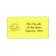 2"l x 3.75"w yellow address label to match our "Happy Birthday Sunshine" invitation with an image of a smiling yellow sun. See matching card, envelope, favour bag, favour box, favour tag, square sticker and custom-cut vinyl sticker. See the entire Birthday Label collection in the INVITES | Stickers & Labels section.