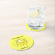 Set of 6 round pulp board disposable coasters with an image of a smiling yellow sun on yellow and optional text. See matching plastic coaster and cloth and paper napkins. See the entire Birthday Coaster collection in the FOOD/BEV | Coasters section.
