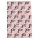Grey tabby cat playing with Happy Birthday message on blush pink background.
