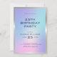Happy 25th birthday invitation template with a simple silver border and pink and blue ombre..