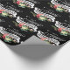 Happy Birthday Text & Flowers On Black Wrapping Paper