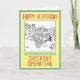 A birthday card with a cartoon of supermarket customers queuing at traffic lights inside a supermarket. Ideal card for any Supermarket Checkout Operative, Till Operator, or Shop Cashier.