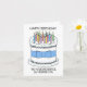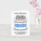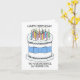 A simple illustration of a white birthday cake decorated with yellow flowers around the sides and lit candles on top. The cake also has a blue ribbon tied around it. The words 'Happy Birthday to a wonderful interpreter' accompany the image which has a white background.
