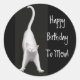 Original fine art design of a happy stretching shorthaired cat by designer Carolyn McFann of Two Purring Cats Studio on customisable clothing and gifts for feline fans.