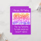 The perfect birthday card to customise for your favourite female engineer! Featuring colourful gears on a bright purple background.