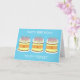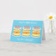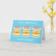 Three cartoon birthday cakes against a turquoise background and the words 'Happy Birthday to my Triplet'.