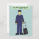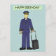 A cartoon male pilot stands in his uniform, with a small black suitcase. The words 'Happy Birthday' accompany the image.
