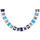 Happy Birthday banner with 8 of your favourite photos, personalised happy birthday to you song and customised flags with your age. The design has a bold colour palette of dark blue, turquoise blue, duck egg blue and white - which you can edit in the design tool if you wish,