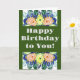 a card that you send to someone on their birthday, with a picture on the front and greetings: