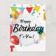 Send warm wishes with this vibrant and festive birthday postcard! Featuring colourful balloons, a cheerful birthday cake, and playful typography, it’s perfect for spreading joy on someone’s special day. A delightful design that makes birthdays even more memorable.