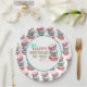 Cute watercolor pink and mint green macarons with a vintage vibe Happy Birthday paper plates.