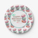 Cute watercolor pink and mint green macarons with a vintage vibe Happy Birthday paper plates.